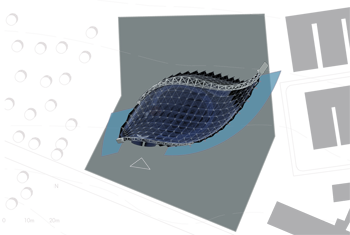 Wir haben eine spezielle Gitterschale mit besonderen Eigenschaften vorgeschlagen, mit einer großen Öffnung zur Landschaft im Hintergrund sowie einem Schnitt für die Eingangssituation. Diese können zusätzlich zur natürlichen Lüftung herangezogen werden.